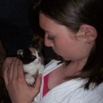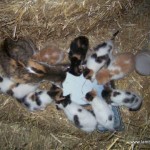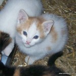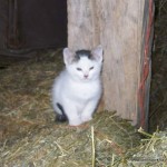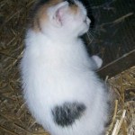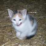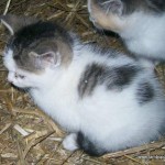 So now that the kittens are being fed on a regular basis, they are becoming a little more friendly. Jenna has managed to name them all.(And tell them all apart) so we now know there are 10 of them. There are a few who come and greet you right off, and then there are the ones that kind of wait to see if you brought anything good, (milk’s good!) and then there are still a couple who may or may not come out to sneak a drink. They can hide back inbetween the round bales, and then come out around the other side and sneak up on you from behind!